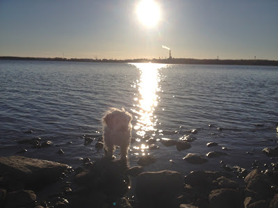 Lika pigg var Candy. Jag blir ofta överraskad av hur mycket energi det finns i den här lilla hundkroppen. Idag stannade ett par på cykel och frågade om de fick klappa henne och jag berättade att vi skulle springa 30km. De såg ut som om de tyckte att jag var tokig som har med henne men sanningen är nog att hon har bättre kondition än vad jag har.